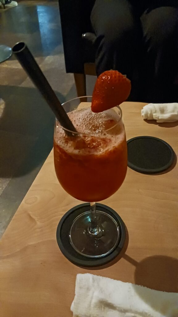 私は、イチゴがなんと5つも入っているという贅沢なカクテルを注文。見た目も華やかで、とても満足でした。