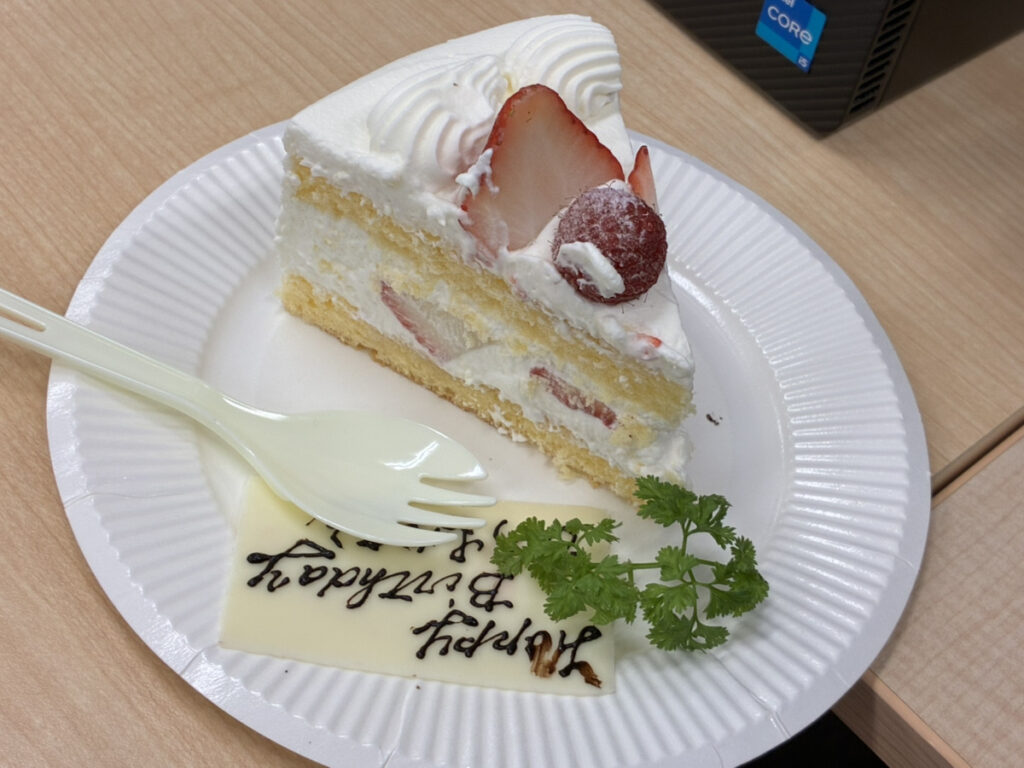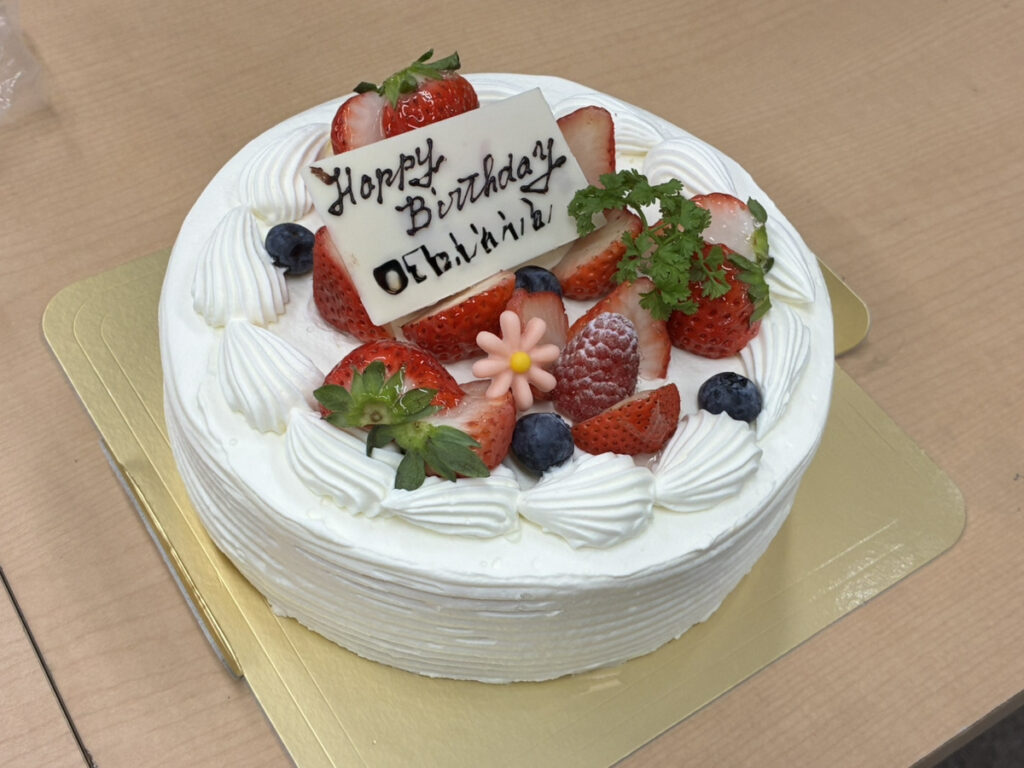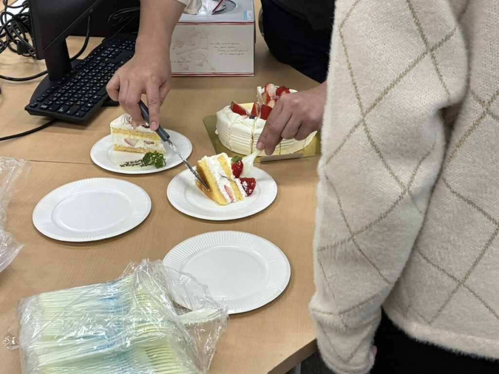 そしてお祝いといえばケーキ。今回はショートケーキをみんなでいただきました。甘いものを囲みながら、自然と会話も弾み、和やかな時間に。